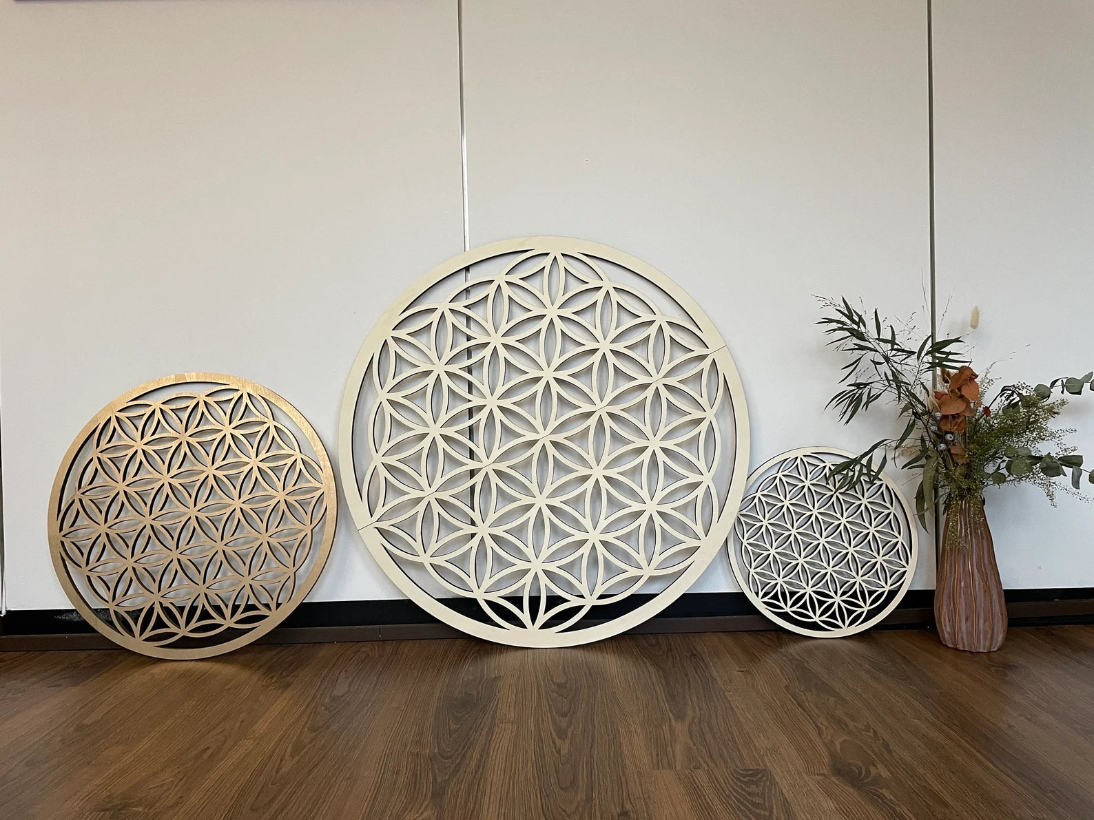 Die Blume des Lebens aus massivem Holz ist mehr als nur Dekoration – sie ist ein kraftvolles Symbol der Heiligen Geometrie, für spirituelle Räume, Yogastudios oder als besonderes Geschenk.