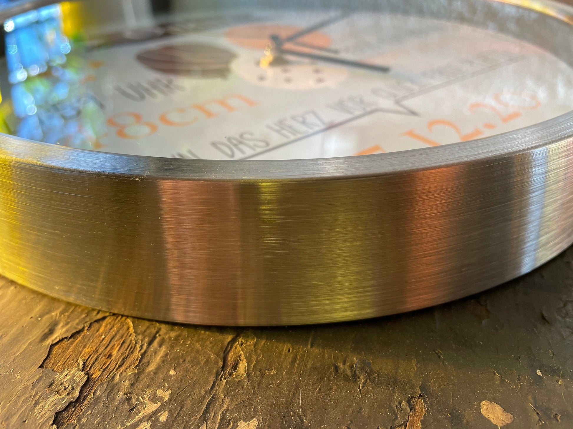 Liebevoll gestalteten wir die Wanduhr mit Wunschnamen und Geburtsdaten