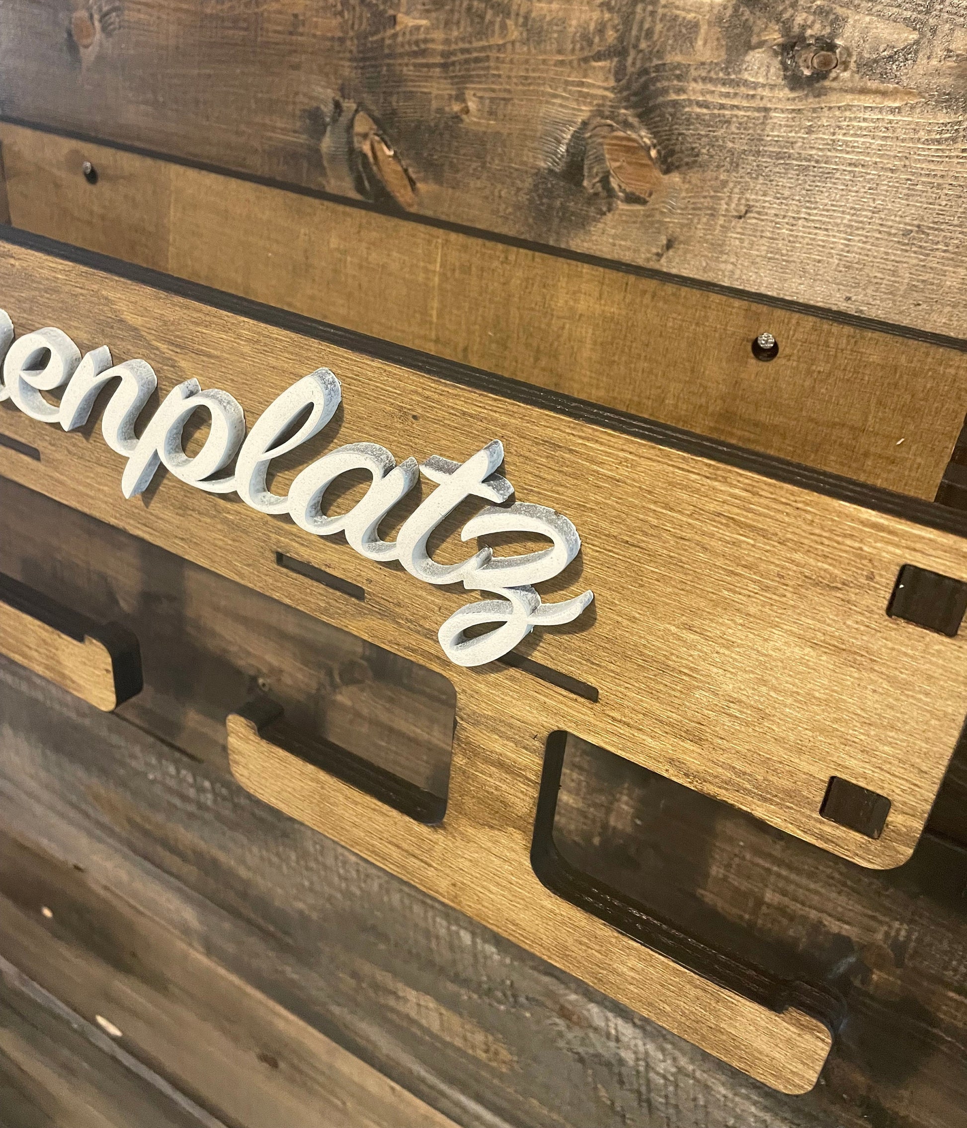 Leinenplatz in Holzoptik, Hundegarderobe personalisiert, Leinengarderobe, Leinenparkplatz, Leinenhalter, Hundeleine, Dogstation