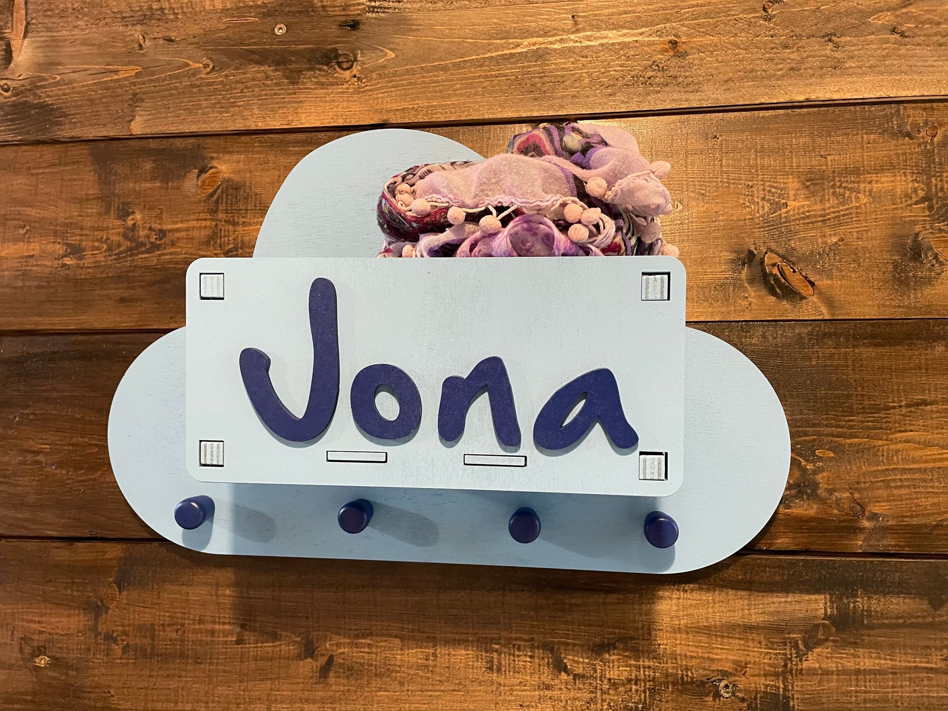 personalisierte Kindergarderobe Wolke mit Mützenfach | Garderobenkiste | Ablagefach | Haken | Individuelle Wolkengarderobe | Aufbewahrung