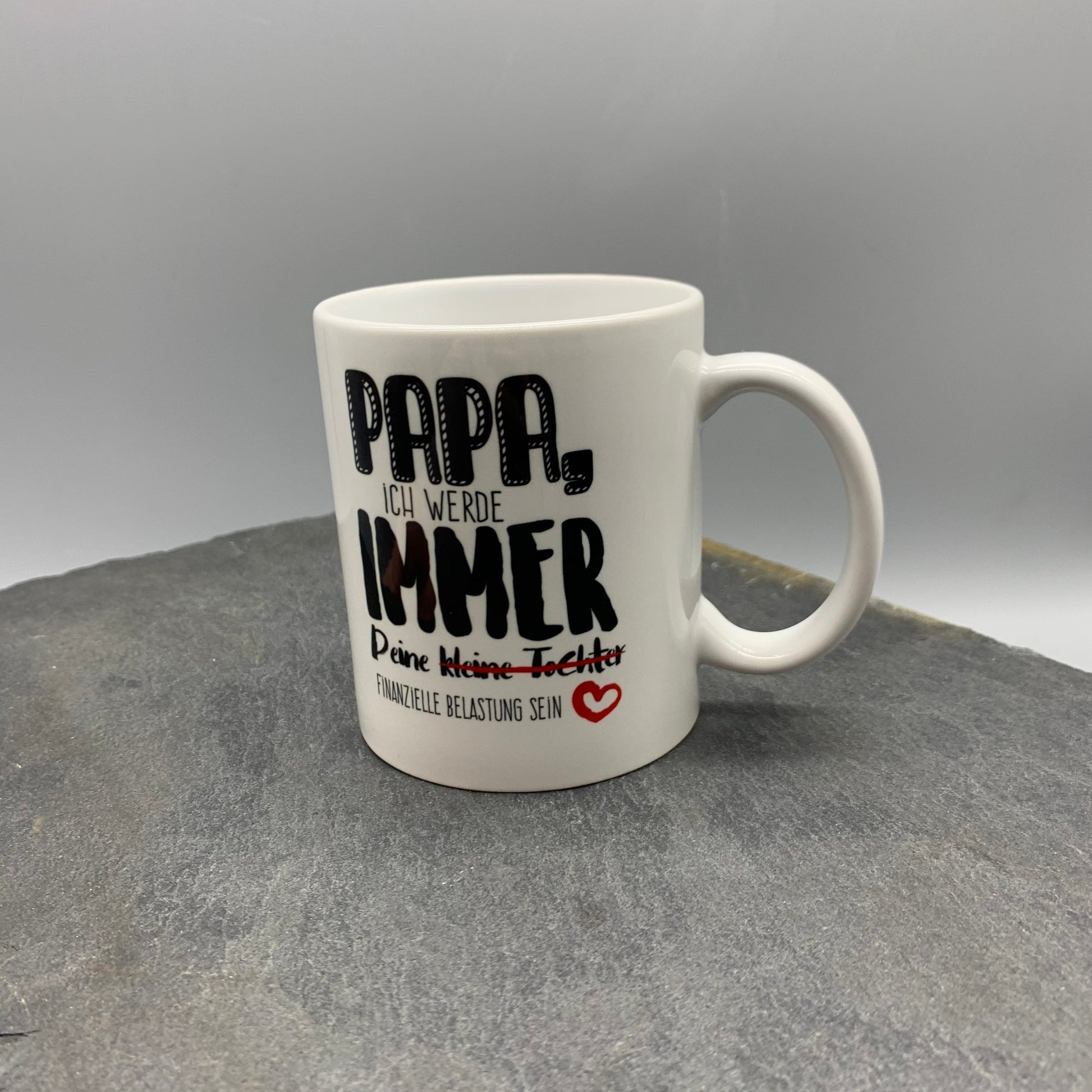 Tasse mit Spruch "Papa, ich werde immer Deine kleine Tochter / finanzielle Belastung sein" Kaffeetasse, Vatertag, Vatertagsgeschenk
